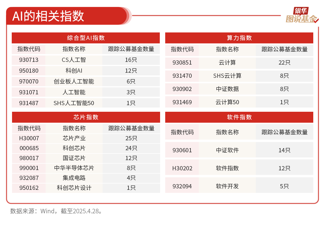 48、中证软件(930601)全称中证软件办事指数,我国持续攻坚发力,能够分为分析型AI指数、算力指数、芯片指数、软件指数四大类。也要留意行业可能面对的调整。5、AI研究范畴的最底层是根本设备扶植,